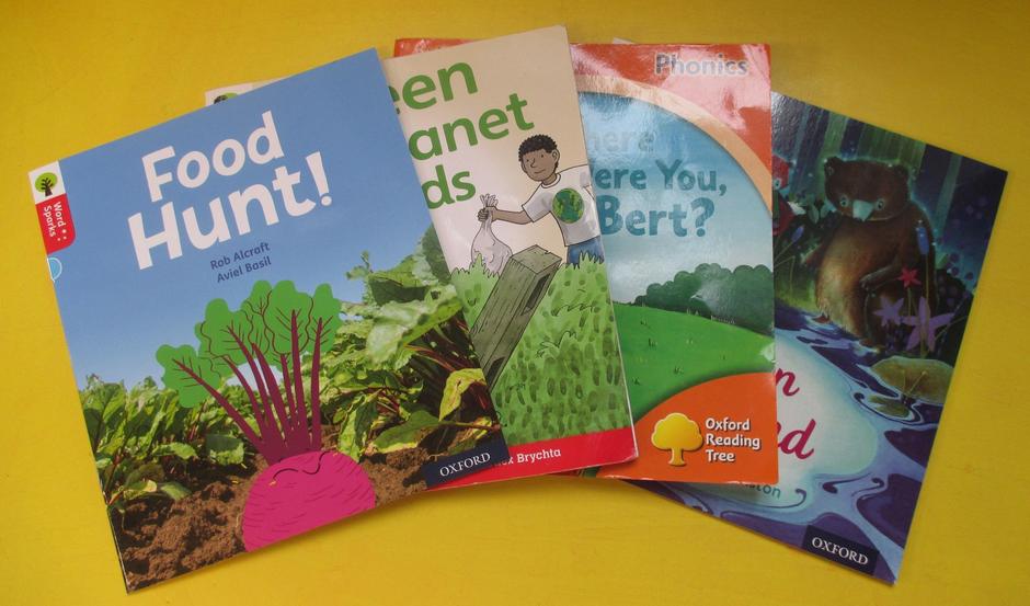 For reading, we use the Oxford Reading Tree books and the Book Banding System.